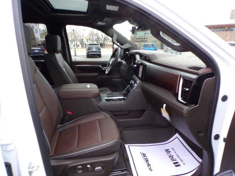 The leather seats in the GMC Sierra are a must for buyers looking for comfort, durability, and style. See what's behind you with the back up camera on the GMC Sierra. This model's Lane Departure Warning helps keep you in your lane. Never get into a cold vehicle again with the remote start feature on this unit. Engulf yourself with the crystal clear sound of a BOSE sound system in this model. This GMC Sierra has auto-adjust speed for safe following. This vehicle is pure luxury with a heated steering wheel. When you encounter slick or muddy roads, you can engage the four wheel drive on this 1 ton pickup and drive with confidence. Set the temperature exactly where you are most comfortable in it. The fan speed and temperature will automatically adjust to maintain your preferred zone climate. The GMC Sierra embodies class and sophistication with its refined white exterior.
